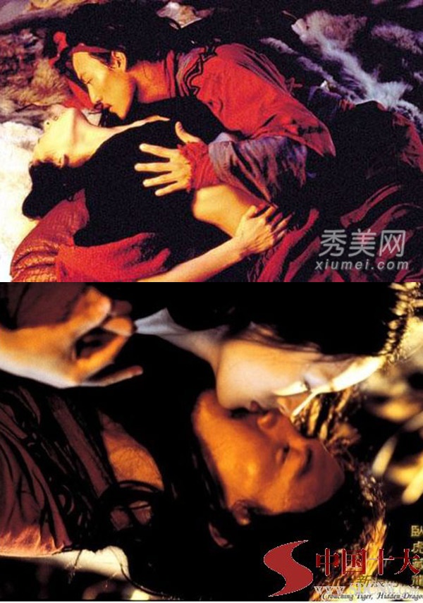 | Hai nhân vật Ngọc Kiều Long và La Tiểu Hổ do Chương Tử Di và Trương Trấn thể hiện có khá nhiều cảnh nóng trong phim Ngọa hổ tàng long (2000). So với phim ảnh giai đoạn ấy, những cảnh quay này mang tính đột phá, lần đầu tiên xuất hiện trên màn ảnh cổ trang Hoa ngữ. |