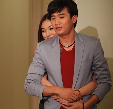 | An Nhiên (Diễm My 9X) và Trác Nguyên (Huy Khánh) có rất nhiều cảnh ôm tình tứ trong phim Váy hồng tầng 24. |