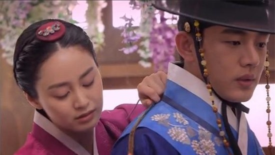 | Khán giả từng phát sốt trước cảnh đo áo trong Arang and the Magistrate sẽ tiếp tục “rụng tim” trước cảnh này trong Jang Ok Jung, Live in Love. Cảnh này xuất hiện trong tập 1 của bộ phim và bắt đầu hiệu ứng màn ảnh giữa hai nhân vật chính do Kim Tae Hee và Joo Ah In thể hiện. |