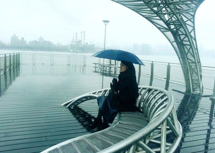 | Kathy Uyên giữa trời tuyết rơi. |