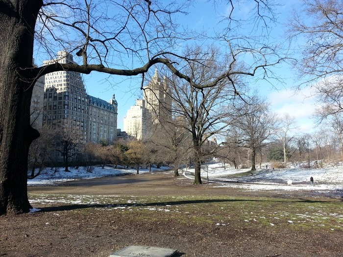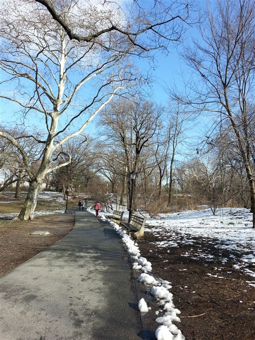 Con đường đầy tuyết tại công viên trung tâm Central Park trong một cảnh quay.