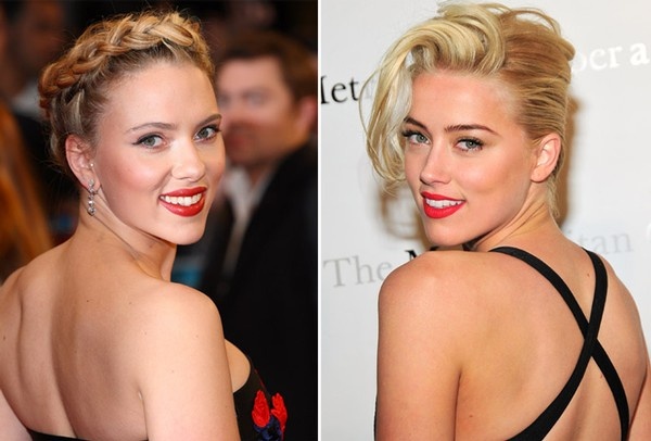| Scarlett Johansson, 29 tuổi, và Amber Heard, 28 tuổi, đều được nhớ đến với mái tóc vàng và gương mặt quyến rũ đậm chất cổ điển. Cả hai cũng đều nằm trong top những phụ nữ được khao khát nhất Hollywood. |