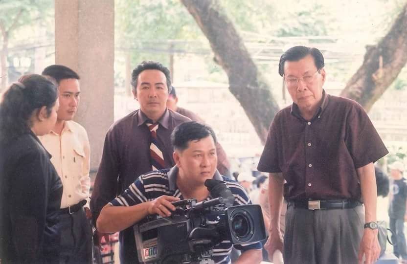 Ông Đinh Duy Ngọc (ngoài cùng bên phải) cùng cố đạo diễn (thứ 3 từ trái sang) tham dự lễ kỷ niệm một năm thành lập kênh truyền hình vào năm 2006. Ảnh: NVCC |
