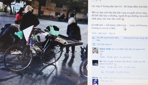 Bức ảnh được cộng đồng mạng chia sẻ nhanh chóng, khi chứng kiến việc một người bán hàng rong bị đổ xe giữa đường, nhiều bạn trẻ đã nhanh chóng nhặt giúp. Bức ảnh do một thành viên có tên Linh Lưu chụp vào thời điểm ngày 23/12 đã được cộng đồng mạng lan truyền với tốc độ chóng mặt.