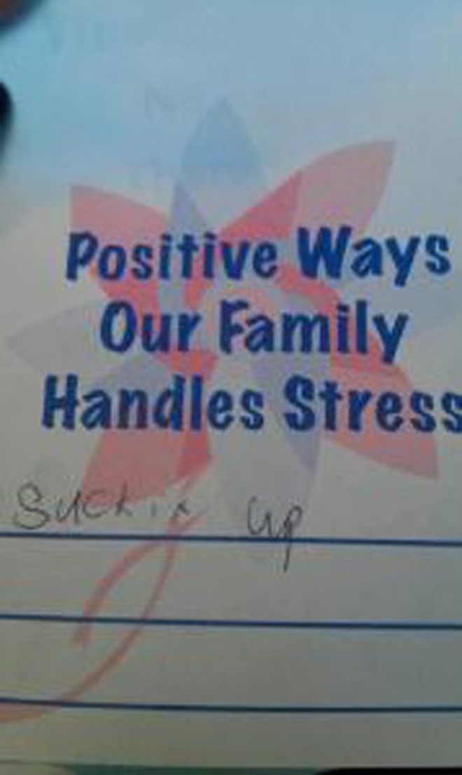 Hỏi: Những cách tích cực mà gia đình chúng ta giải quyết căng thẳng? Trả lời: Đối mặt với nó. |