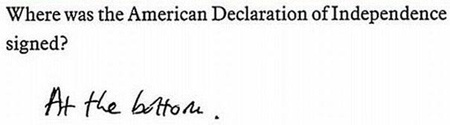 | Bản Tuyên ngộc độc lập của Mỹ đuợc ký kết ở đâu? Trả lời: Ở phía dưới cùng của bản tuyên ngôn. |