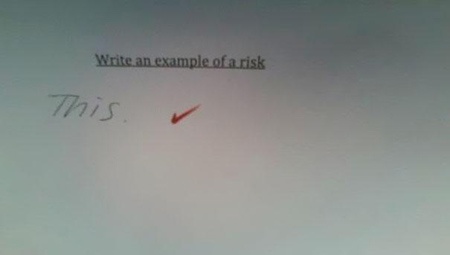| Hãy lấy một ví dụ về một sự mạo hiểm. Và cậu học sinh đã đưa ra vì dụ là “Đây”. Một câu trả lời thông minh khiến giáo viên của cậu bé không thể không công nhận điều đó. |