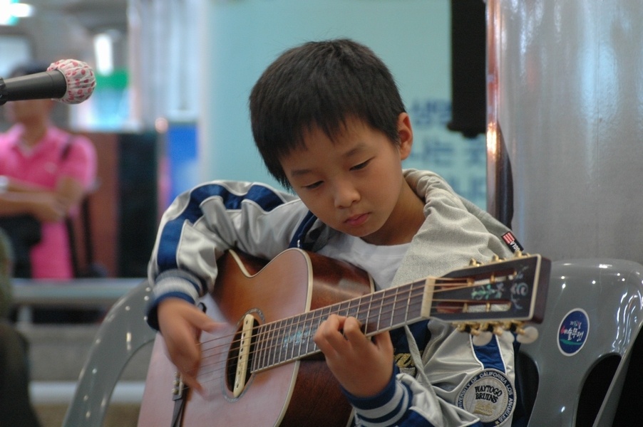 Cha của Sungha Jung đã vô cùng ngạc nhiên với kĩ thuật phi thường thể hiện trên một cây đàn đồ chơi của con mình. Ông quyết định mua cho Sungha một cây đàn mới tốt hơn: “Cort Earth 900”.