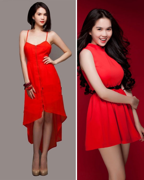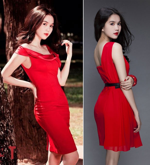 | Khi diện váy đỏ, Ngọc Trinh luôn khéo léo trang điểm son môi đỏ để khẳng định sự đồng điệu cũng như gu thời trang thời thượng của mình. |