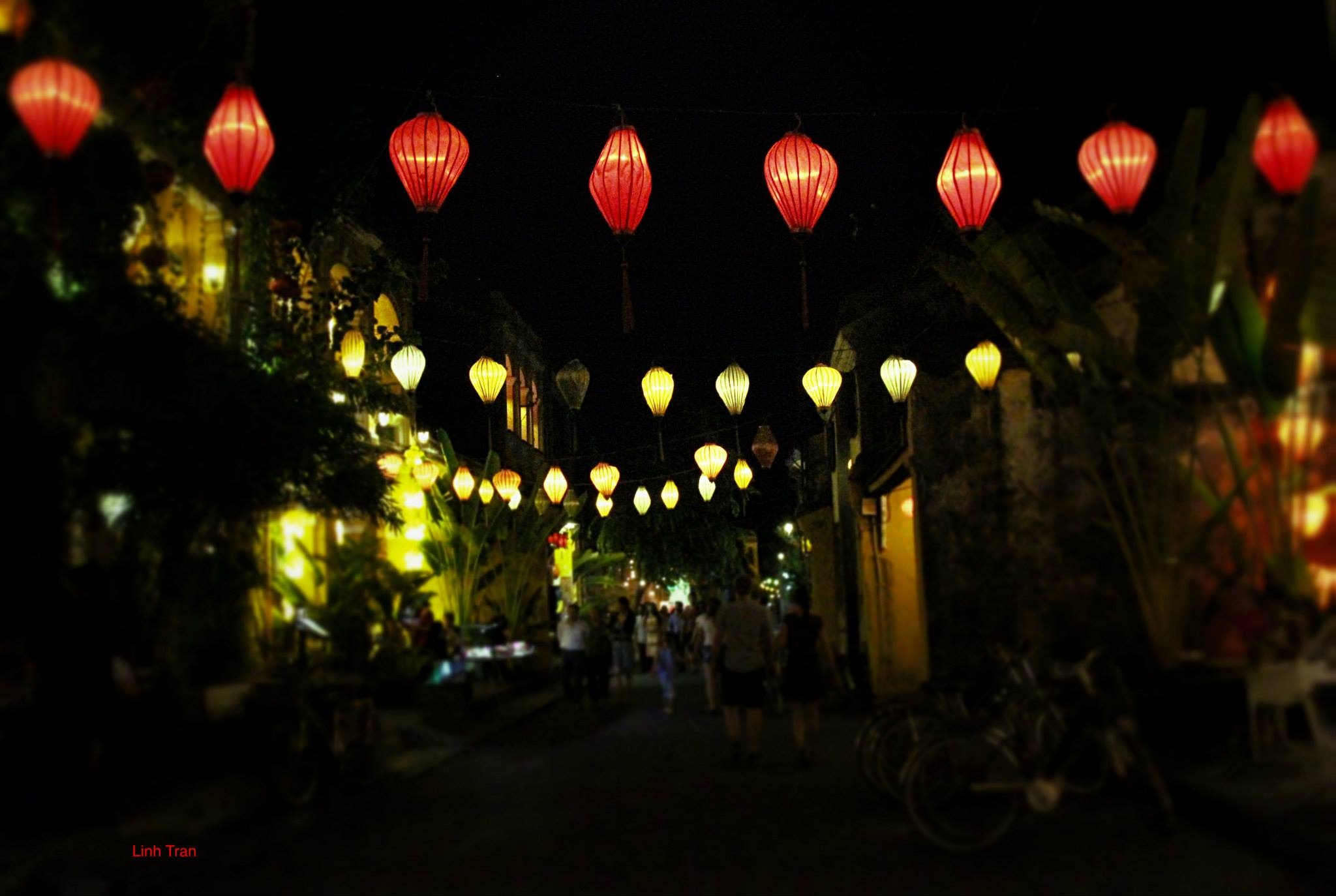 Có một cảm giác rất lạ khi đêm đang chậm rãi lướt những ngón tay trên những mái ngói lô xô. Nghe đâu đây trong gió, rõ ràng là một giai điệu mượt mà của những ngón tay lướt trên phím đàn. Trăng treo trên đầu, bóng người in trên phố như những nốt nhạc trầm. Những chiếc đèn lồng ở khắp nơi, trên đầu, dưới chân, bên phải, bên trái, đằng trước, đằng sau…. Chính xác là bạn trôi đi trong không gian ánh sáng đa tầng ấy.
