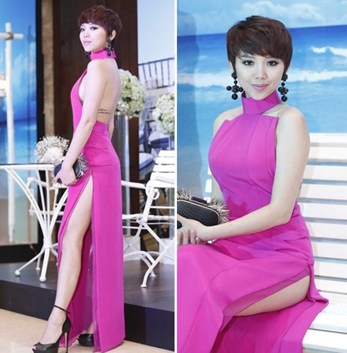 | Người đẹp Hà Anh không ngại ngùng gì với những thiết kế táo bạo. Việc ăn mặc hớ hênh cũng thường trực. |