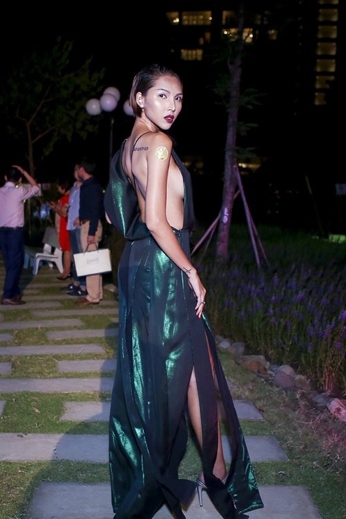 | Giống các trường hợp kể trên, bộ cánh có khoảng hở bên sườn rộng của Minh Triệu giúp cô khoe lợi thế hình thể, song cũng không kém phần "nguy hiểm" nếu người mặc sơ xuất. Ảnh: Khoa Nguyễn |
