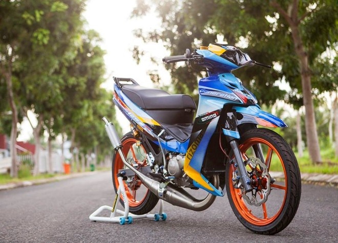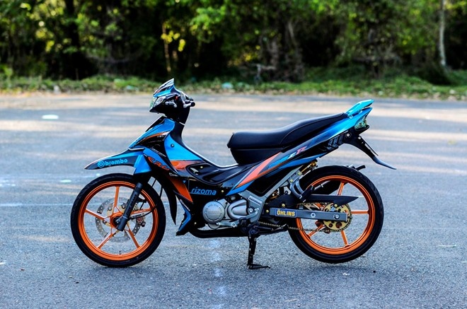 | Chủ nhân của chiếc Yamaha Z này là một biker tại Sóc Trăng, nổi tiếng với bộ sưu tập nhiều xe phân khối lớn. Yamaha Z là một trong những chiếc xe nhỏ hiếm hoi được chủ xe yêu thích và đầu tư nhiều tâm huyết. Thân xe sơn tem đấu thể thao bên cạnh loạt đồ chơi như mâm CNC Racingboy, phuộc Ohlins, heo Brembo, tay thắng CRG. |