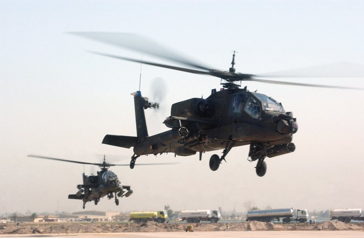 | AH-64 Apache là máy bay trực thăng tấn công của Lục quân Mỹ. |