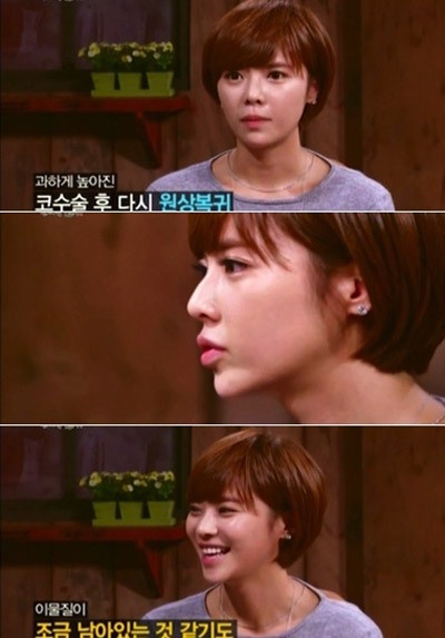 Hwang Jung Eum - nữ diễn viên nổi tiếng trong bộ phim Phía đông vườn địa đàng từng thừa nhận rằng bản thân cô đã trải qua một lần nâng mũi. “Tôi đã phẫu thuật mũi nhưng sau đó phải đến bệnh viện để sửa lại như cũ vì nó quá cao, trông tôi cứ như Keanu Reeves vậy. Lần đó tôi không dám bước chân ra khỏi nhà hay đi làm trong vòng một tháng, cho đến khi lấy lại chiếc mũi cũ của mình”.