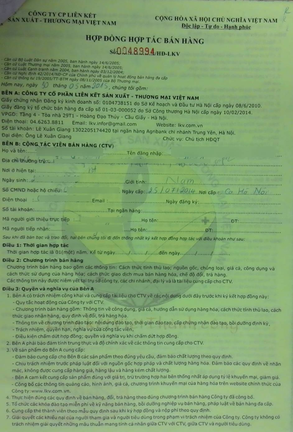 | Một bản hợp đồng cộng tác viên của Liên kết Việt - Ảnh: otofun |