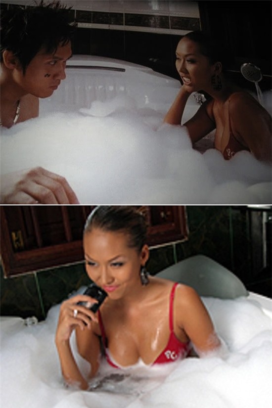 | Bọt xà phòng, cánh hoa trong các cảnh tắm: Nhiều đạo diễn Việt Nam thích đưa thêm các cảnh tắm vào phim để tăng thêm độ "nóng", vừa giúp phim được chú ý hơn, đồng thời cũng là cách để diễn viên khoe được thân hình gợi cảm. Để những cảnh quay này vượt qua khâu kiểm duyệt, bọt xà phòng và các "đạo cụ" che chắn khác được sử dụng triệt để, nhằm tránh việc phô bày quá nhiều da thịt trên màn ảnh. |