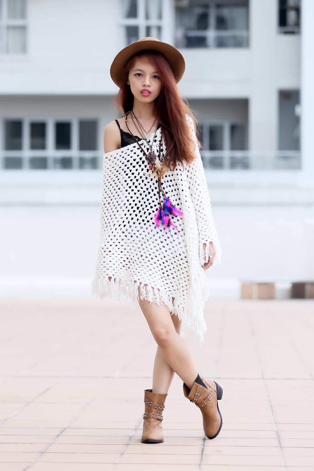 Đến tham gia buổi casting khu vực phía Nam chương trình Fashionista Vietnam, đa số các tín đồ đều chứng tỏ gu thời trang ấn tượng, phá cách và nổi bật. Trong ảnh, một cô gái gây ấn tượng với set đồ mang hơi hướng miền Viễn Tây nước Mỹ. Bộ phụ kiện ăn nhập với tổng thể.