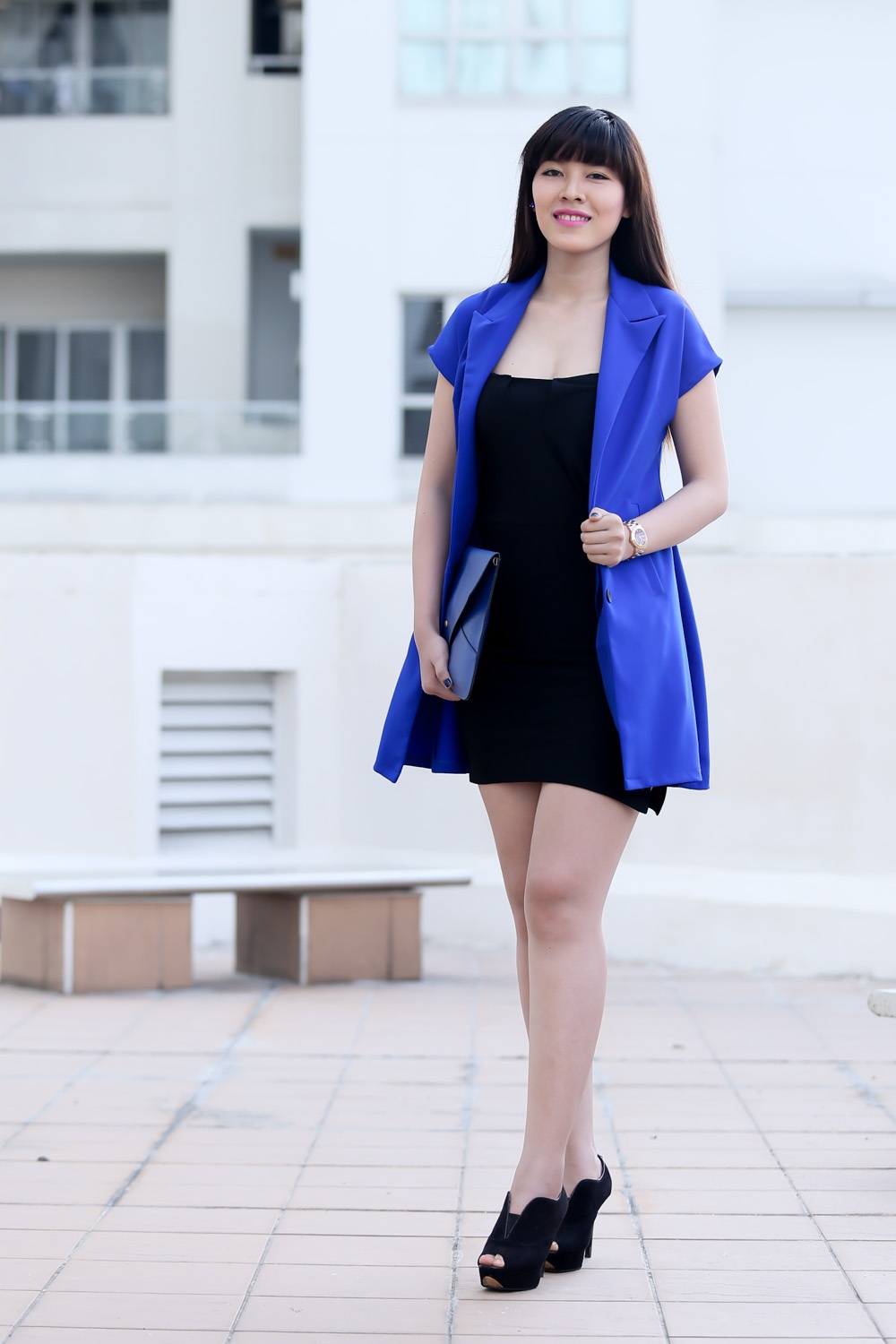 | Cô gái này đơn giản hơn với áo vest khoác ngoài phong cách hiện đại. |