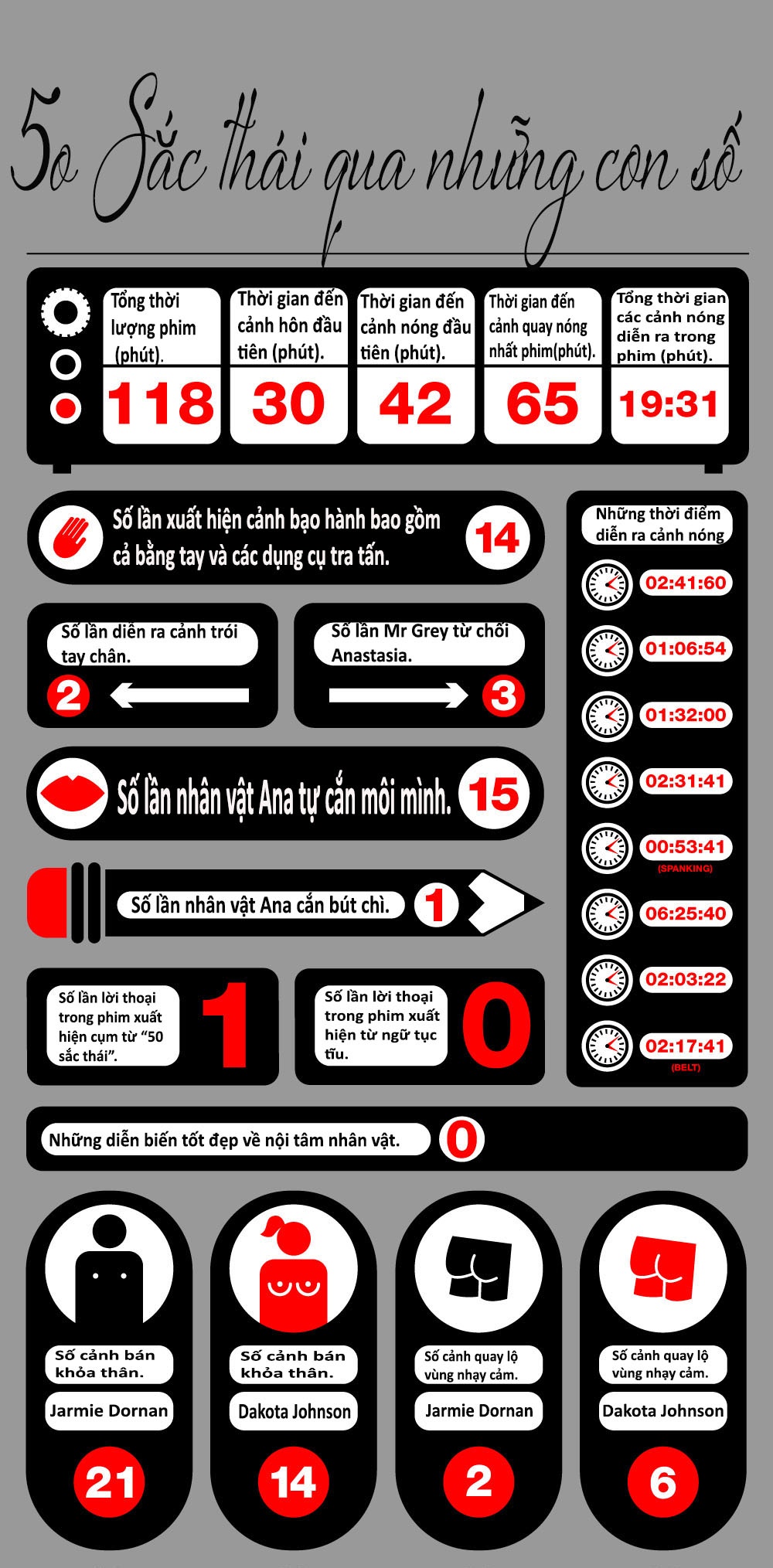 Dưới đây là thống kê toàn bộ chi tiết và cảnh quay nóng bỏng đã tạo nên sức hút cho bộ phim "50 sắc thái".
