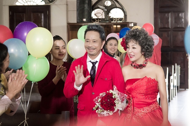 | Thúy Nga và Bảo Chung làm lễ cưới trong đĩa hài. Ảnh: NVCC |