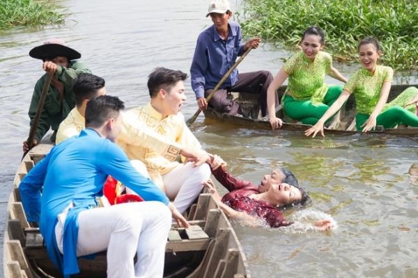 | Thúy Nga bị dị ứng khắp người sau khi quay cảnh quay ngã xuống sông. Ảnh: NVCC |