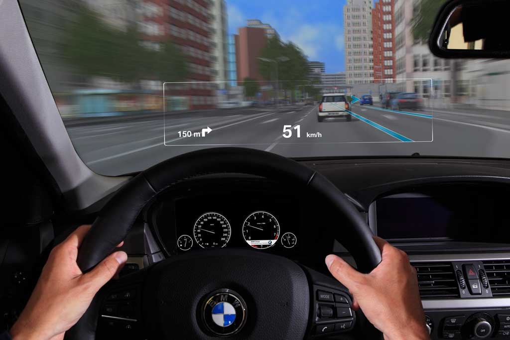 BMW đã ứng dụng công nghệ hiển thị thông tin lên kính chắn gió ở một số mẫu xe của hãng. Đồng thời, hãng xe Đức cũng đang phát triển công nghệ AR có khả năng nhận diện các vật ở phía trước xe và cho người lái biết khoảng cách giữa xe và vật đó. AR sẽ hiển thị thông tin chung về vật đó trên kính chắn gió ngay trước mặt người lái.