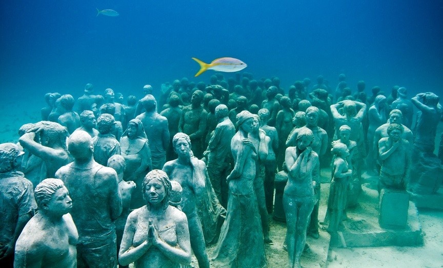 4. Bảo tàng Cancun Đây là kết quả của sự hợp tác giữa giám đốc Jaime Gonzalez Canto của Marine Park và nhà điêu khắc Jason deCaires Taylor. Có tới hơn 400 tác phẩm điêu khắc được đặt ở đây. Công trình này không chỉ dành cho việc tham quan mà mỗi bức tượng đều sẽ trở thành nhà cho san hô cùng các loài sinh vật biển khác sinh sống, góp phần phục hồi môi trường sống dưới nước cho vùng biển Mexico. |