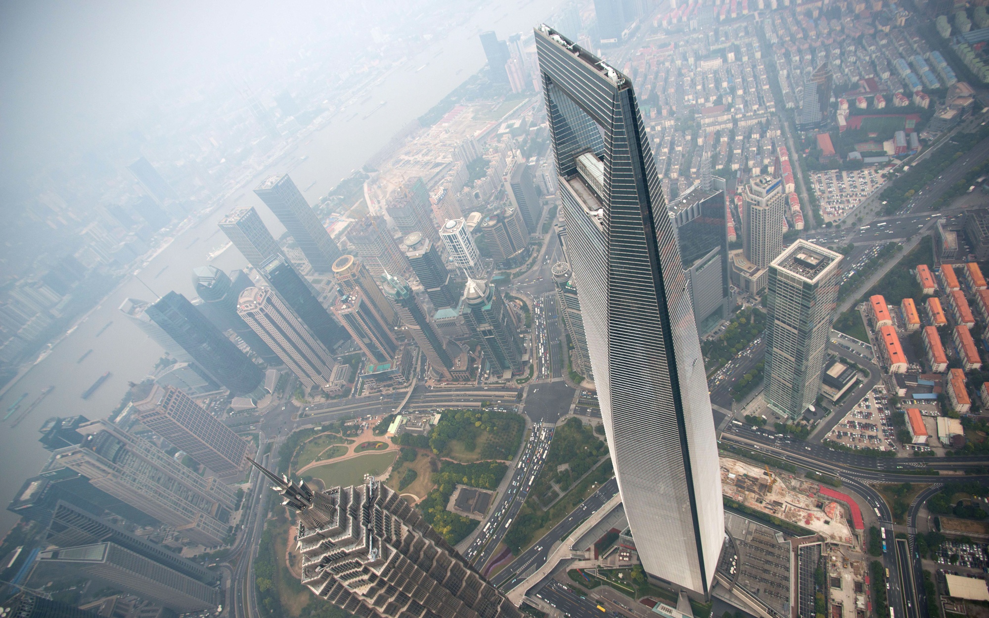 | 9. Trung tâm tài chính Shanghai World, Thượng Hải, Trung Quốc (492 m): Tòa tháp ấn tượng này được thiết kế theo biểu tượng trời và đất của Trung Quốc (đường lượn tròn và khoảng vuông ở giữa). Nơi đây cũng có khách sạn cao thứ 2 thế giới - Park Hyatt Shanghai.
