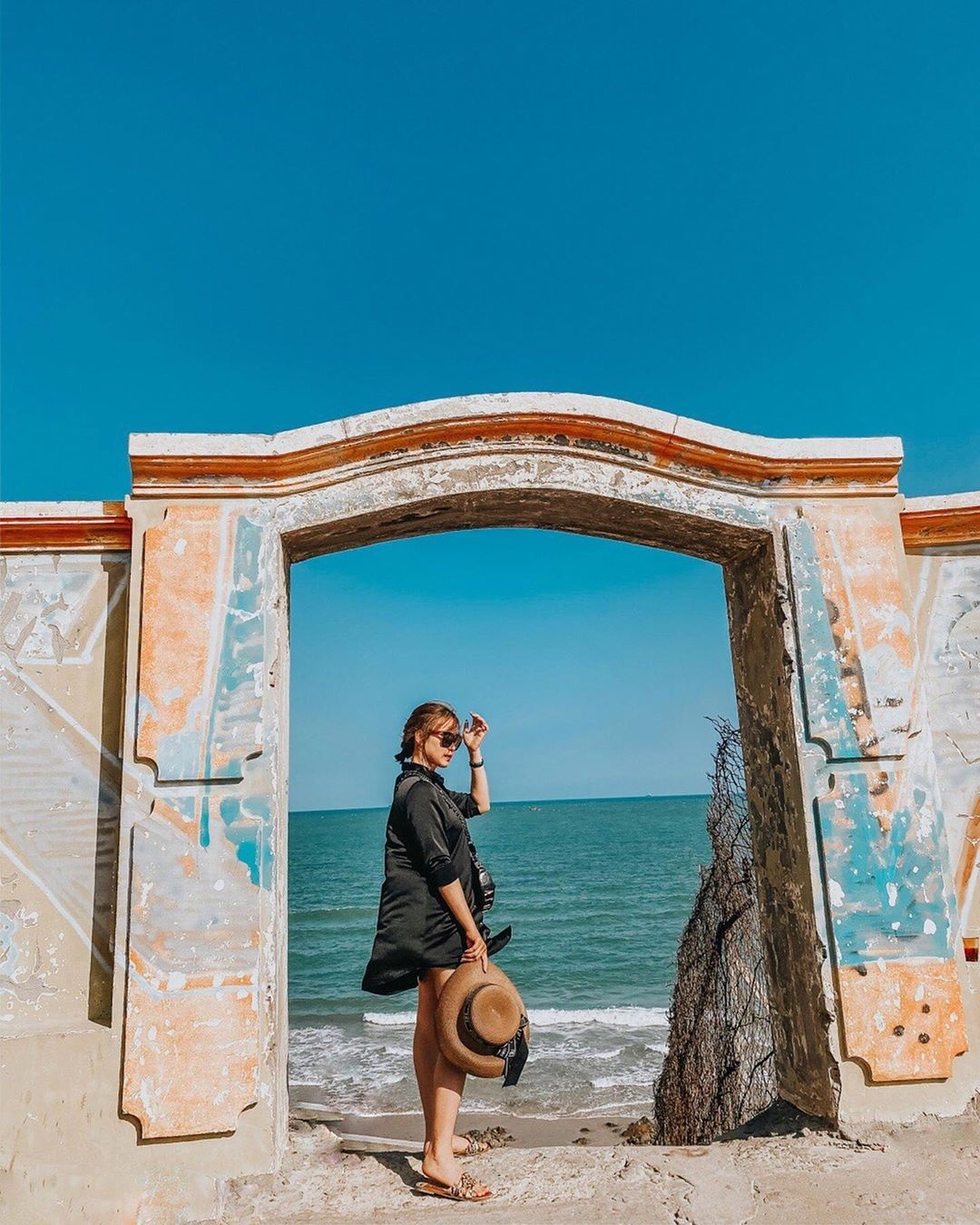 | Cổng trời Bãi Trường: Với thiết kế độc đáo hình mặt người được tách làm đôi, cánh cổng trời này xây dựng tại Bãi Trường, Phú Quốc. Được thiết kế mặt hướng về đất liền, ở giữa có một lối đi nhỏ để du khách có thể đứng chụp hình, công trình nghệ thuật này đã trở thành địa điểm check-in quen thuộc của "hội sống ảo" khi tới đảo ngọc. Ảnh: Elisetan91, andy.mahoang. |