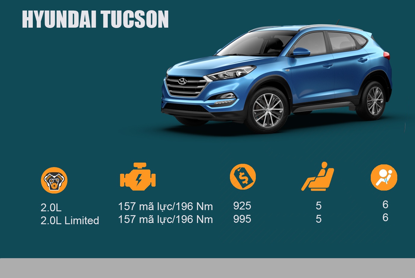 Hyundai Tucson là mẫu crossover khá thành công của hãng xe Hàn Quốc. Thế hệ thứ 3 của dòng xe này được nhập khẩu nguyên chiếc với mức giá 925 triệu cho phiên bản 2WD và 995 triệu đối với bản Tucson Limited.
