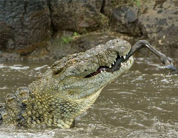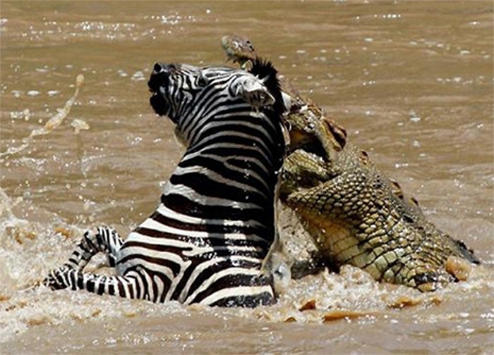 | Ngựa vằn cũng không thoát khỏi hàm cá sấu hung dữ. |