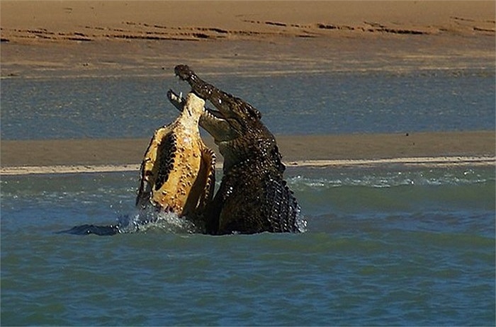 | Cá sấu đớp một con rùa trong nháy mắt. |