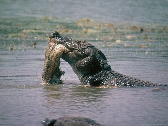| Với hàm răng to nhọn của mình, cá sấu khiến trăn khổng lồ chịu thua. |