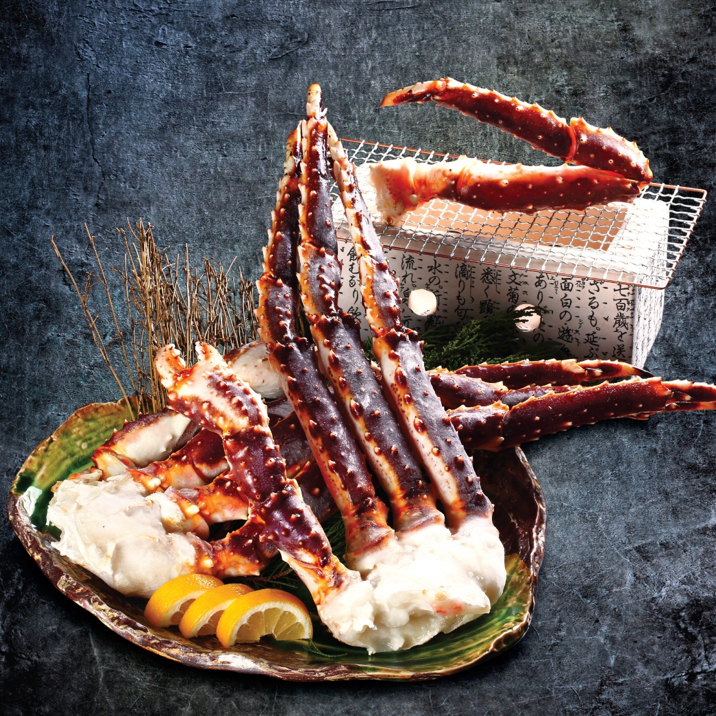 Cua hoàng đế (taraba kani) được xem là vua của các loại cua vì kích thước to, thịt cua chắc, có vị ngọt thanh. Khi nướng, các đầu bếp sẽ canh thời gian và độ lửa hợp lý để cua chín tới, đảm bảo thịt dai, mềm và không bị khô.