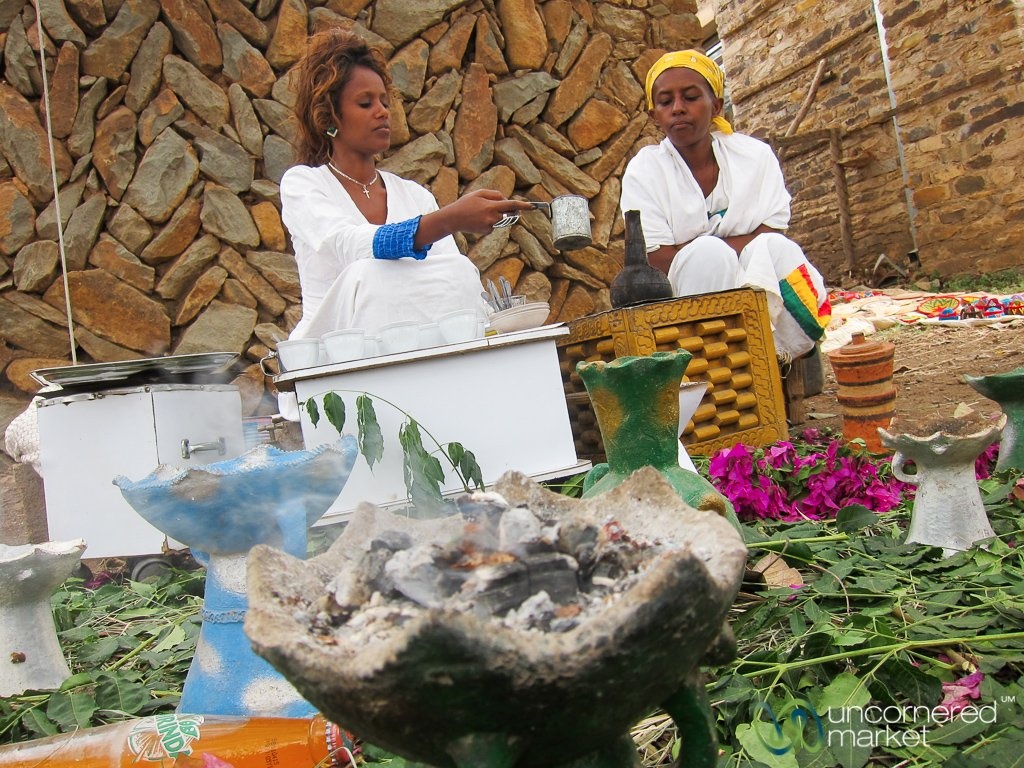 Ethiopia: Một tiệc cà phê theo kiểu truyền thống của người Ethiopia thường tốn ít nhất 20 phút từ lúc chuẩn bị tới lúc có được cốc đầu tiên, nhưng rất đáng để bạn chờ đợi. Ảnh: Uncornered Market. |