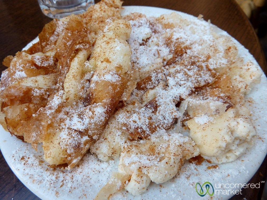 Hy Lạp: Đảo Crete có món bugatsa, một loại bánh nướng nhân kem tươi hoặc phô mai, rắc thêm chút bột đường. Đây là món ăn vặt ngon mà hợp túi tiền. Ảnh: Uncornered Market. |