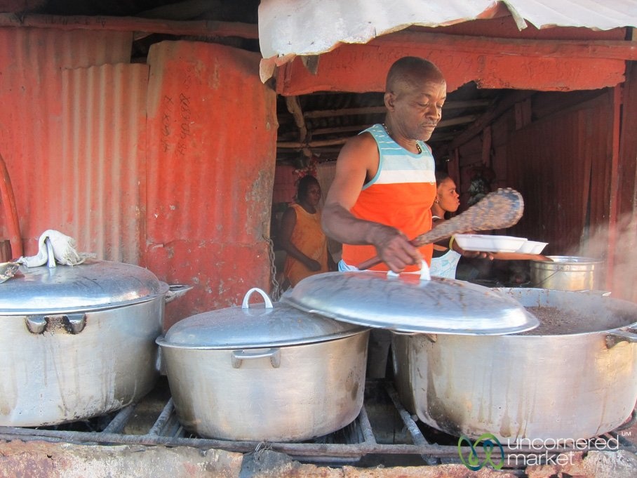 Haiti: Ẩm thực đường phố của Haiti có khá nhiều món rán, như các loại thịt, khoai tây... Tuy nhiên, nếu bạn muốn có một bữa ăn no bụng mà không tốn quá nhiều tiền, hãy thử món mayi moulen kole ak legim gồm bột ngô, đậu và các loại rau hầm nhừ. Ảnh: Uncornered Market. |