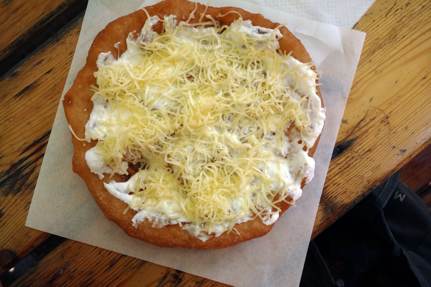 Hungary: Tới bất cứ khu chợ nào ở Hungary, bạn sẽ thấy các quầy hàng bán langos với mùi thơm khó bỏ qua. Langos là bánh mì mặn được rán giòn, thêm phô mai và kem chua. Ảnh: Myamusedbouche. |