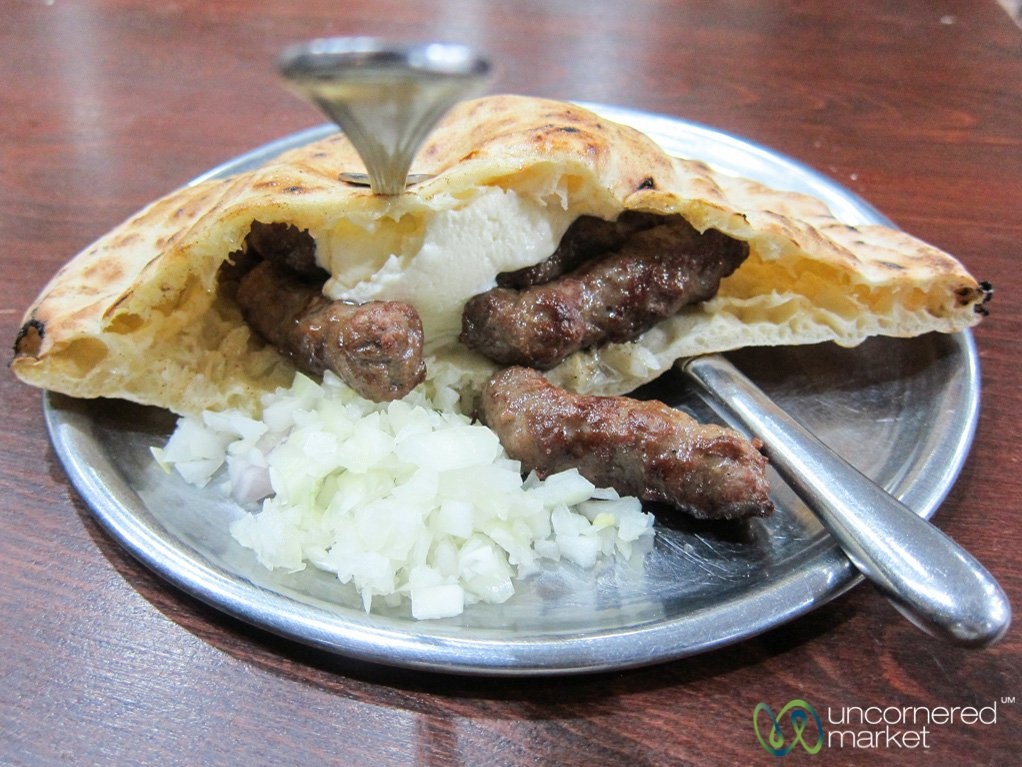 Bosnia và Herzegovina: Đi dọc đường phố Sarajevo, bạn sẽ không thể nào không ngửi thấy mùi ćevapi, món thịt nướng nổi tiếng của người Bosnia. Ćevapi thường gồm 5-10 viên thịt băm nướng được kẹp trong bánh mì tròn hoặc bánh mì dẹt. Bạn có thể cho thêm hành hoặc kem ofkajmak. Ăn xong một suất ćevapi, bạn sẽ thấy no cả ngày. Ảnh: Uncornered Market. |