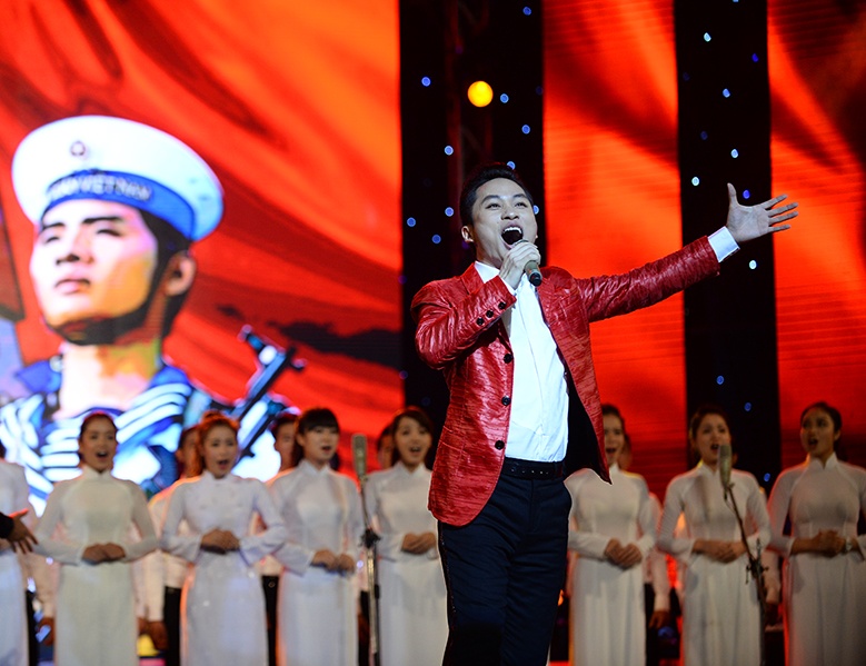 Sân khấu tràn ngập màu đỏ của hồn thiêng Tổ quốc với cờ đỏ sao vàng, hình ảnh biển đảo… qua phần trình diễn mở màn của Tùng Dương với Nơi đảo xa, ca khúc viết về cố Đại tướng Võ Nguyên Giáp Tiếng đàn do Hoài Nam biểu diễn và khi Nguyễn Đình Thanh Tâm kết chương trình với Tổ quốc gọi tên mình.
