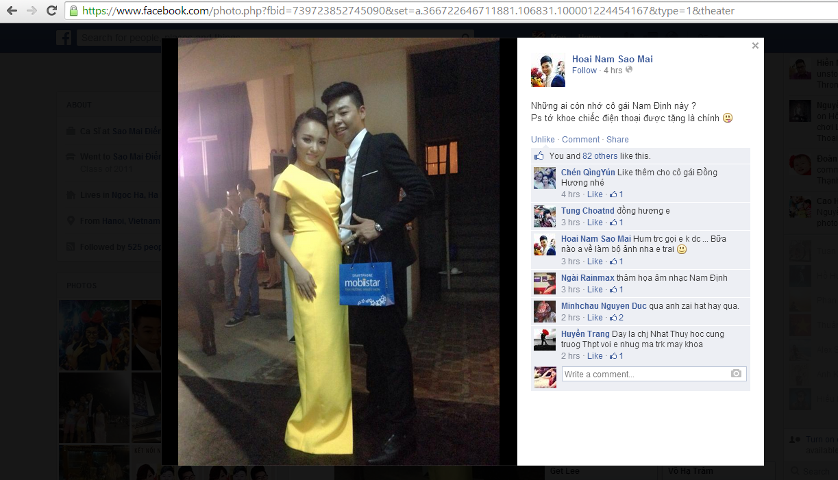 | Hoài Nam khoe điện thoại trên Facebook cá nhân. |