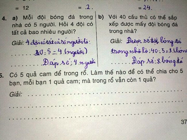 Sau đó, một đề Toán được cho là của học sinh lớp 2 cũng khiến dân mạng tranh cãi "nảy lửa" bởi câu hỏi số 5 trong đề. Đa số các ý kiến đều cho rằng đề sai, đánh đố học sinh. Bên cạnh đó, phần trả lời của học sinh ở câu hỏi số 4 cũng khiến dân mạng bật cười.