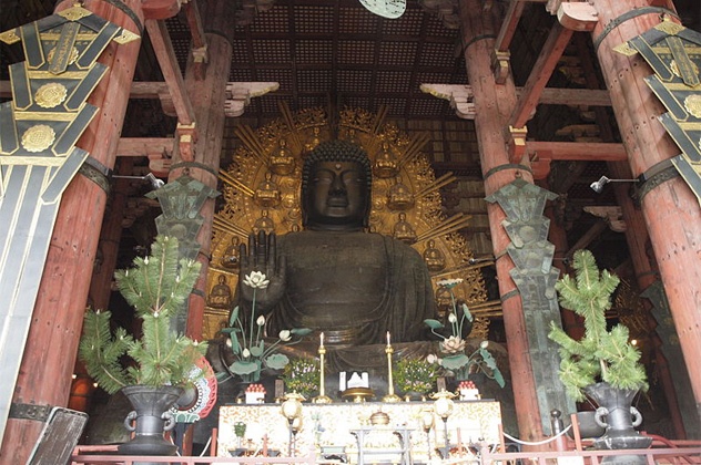 Todaiji là ngôi chùa lớn, nổi tiếng tại Nara, Nhật Bản. Điện chính của chùa là quần thể kiến trúc gỗ lớn nhất thế giới. Todaiji được xây dựng lần đầu tiên vào năm 752. Trải qua nhiều biến cố như chiến tranh, thiên tai, ngôi chùa hiện tại được xây dựng lại vào năm 1692 và chỉ bằng 2/3 kích cỡ phiên bản đầu. Ngôi chùa còn là nơi lưu giữ và thờ tượng đồng Phật Tỳ Lô Giá Na cao 15 m. Người ta đúc bức tượng từ 129 kg vàng và 437 tấn đồng. Ảnh: Listverse.