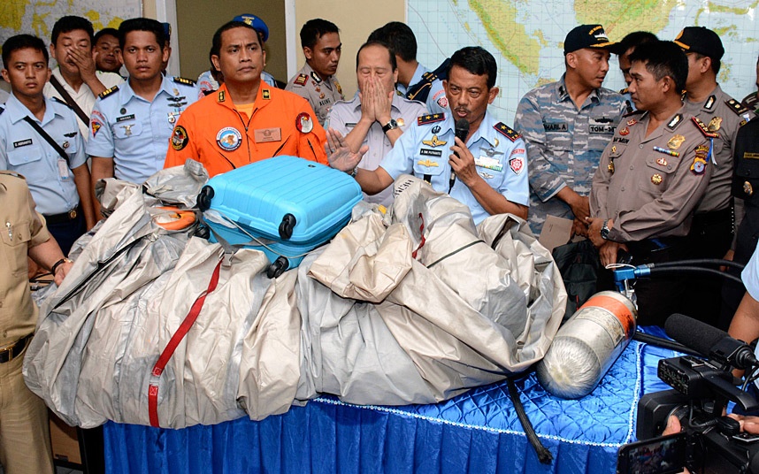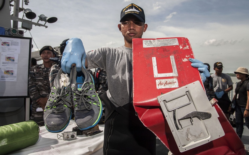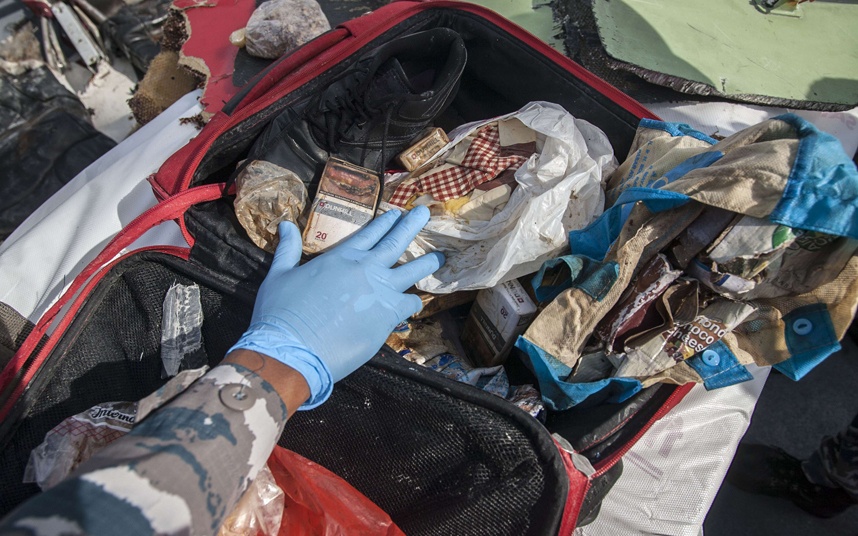 Nhiều di vật hành khách nằm trong những túi hành lý nổi trên mặt nước trong khi số khác trôi nổi cùng thi thể những người thiệt mạng. Ảnh: AFP |