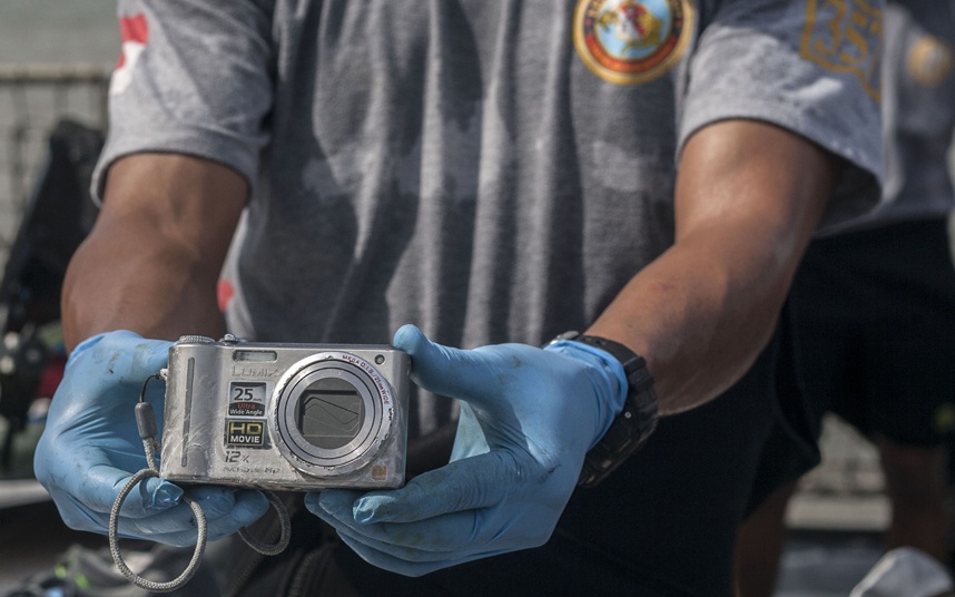 Máy ảnh cá nhân nằm trong số di vật của hành khách. Nỗ lực tìm kiếm thi thể và hộp đen máy bay xấu số vẫn đang được tiến hành. Ảnh: AFP |