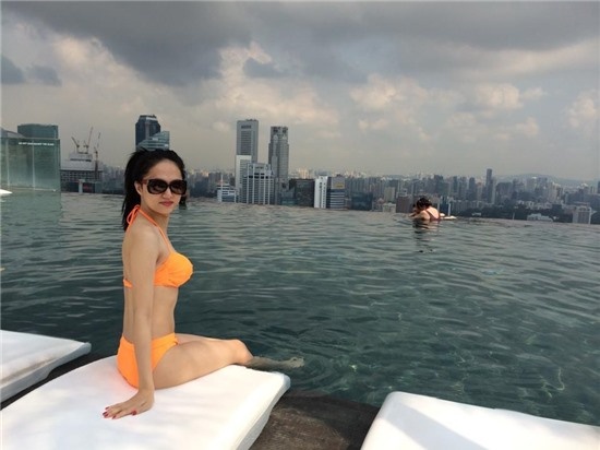 | Bơi ở Marina Bay Sands: Nằm ở độ cao 220m, hồ bơi của khách sạn Marina Bay Sands là nơi nhiều sao Việt muốn trải nghiệm nhất vì nó là hồ bơi cao nhất thế giới, vừa bơi vừa ngắm toàn cảnh thành phố. Ngọc Trinh từng ghi lại bức ảnh khi trải nghiệm nơi đây. |