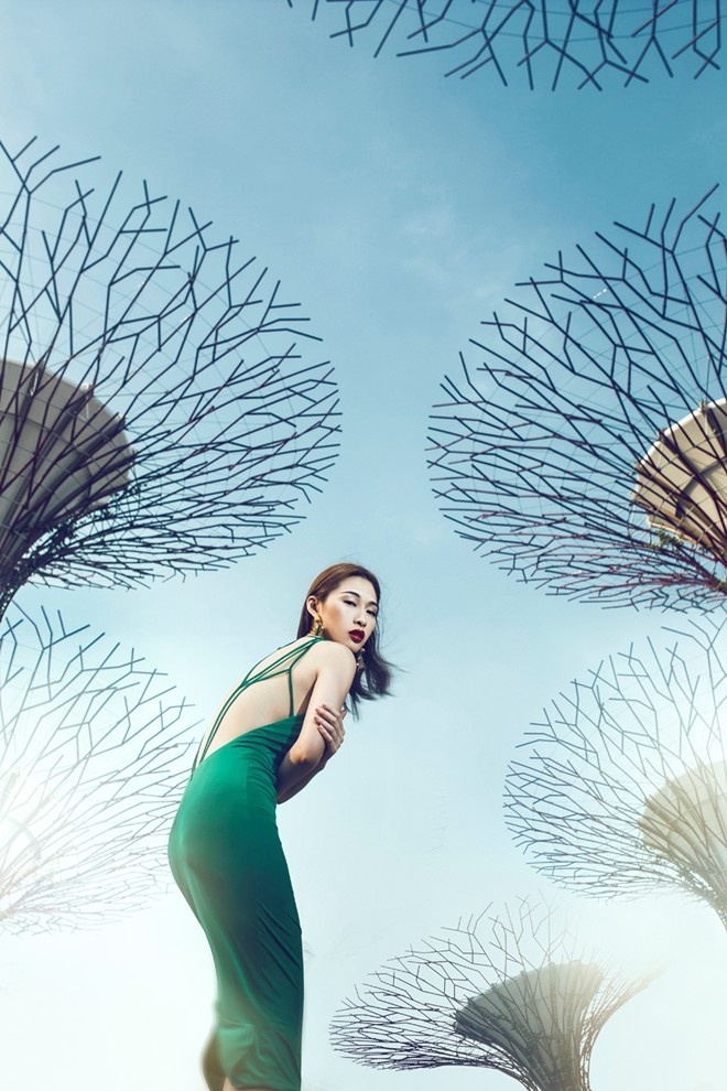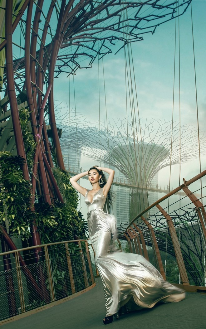 Gardens by the Bay: Trong bộ ảnh thời trang mới nhất của Quỳnh Thy được thực hiện tại vườn cây nhân tạo khổng lồ đã trở thành kỳ quan ở khu Gardens by the Bay. Đây là một trong những điểm đến thường xuyên của sao Việt và khách du lịch mỗi khi tới quốc đảo sư tử.