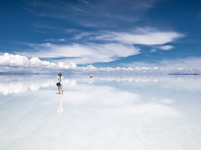 | Sa mạc muối Salar de Uyuni, Bolivia: Có tiền thân là một hồ nước mặn khổng lồ bị cạn, sa mạc muối Salar de Uyuni chứa khoảng 5 tỉ tấn muối và có diện tích lên đến 10.582 km2. Nơi đây có những khách sạn muối hoặc các đảo đá dành cho khách du lịch tới tham quan. |