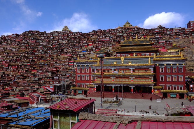 Viện Phật giáo Serthar là một trong những trung tâm lớn và có tầm ảnh hưởng nhất đối với việc nghiên cứu Phật giáo Tây Tạng trên thế giới. Tuy nhiên, du khách khó thể tiếp cận nơi này. Thành phố Phật giáo Larung Gar nhìn từ trên cao. Ảnh: Dailymail.